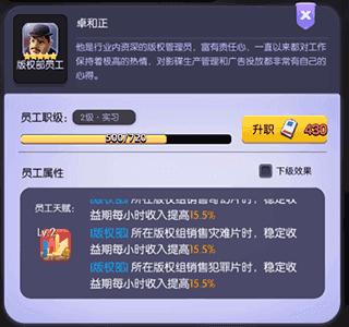 不管是员工、编剧还是导演的培养都是一个缓慢的养成过程,这也是个养成游戏体验的就是养成的乐趣,不需要急于求成,都是建议先用低星低配置的员工后更换成更高配置的人员,不过是在词条上还是初始属性上的加成都是非常大的。
