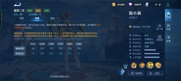 姬小满的二技能可以向前翻越,可以算得上一段位移,期间处于霸体状态,利用好可以免疫大多数控制技能。此外百分之三十的免伤效果让小满不出肉装也能有不错的坦度,回复生命的效果让小满有不错的续航能力。