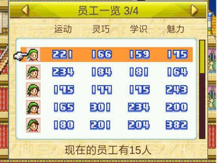 熟练度:通过对员工的培养,采矿、建造、接待和制作工艺品的熟练度会相应提升,工作效率也会随之增快。有时还会获得新技能。