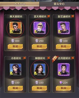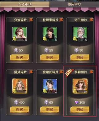 到了游戏后期,紫色人才渐渐失去上阵的机会,我们购买倾向基本都是橙色碎片,还有部分高星的紫色碎片,切勿浪费多余的人脉资源。如果刷新出6折的钻石橙色碎片也可以考虑入手,还是比较划算的。