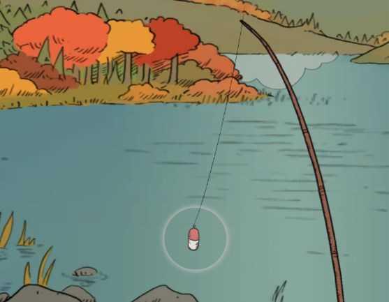 5、然后点击界面右上角的湖泊,在湖上我们可以看到一个钓鱼的鱼钩和浮标,点击它就可以开始钓鱼了。