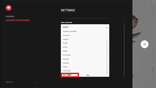 3、在SETTINGS页面点击“GAMT LANGUAGE”,鼠标下滑找到“繁体中文”选项即可进行设置。