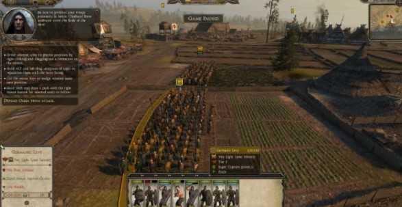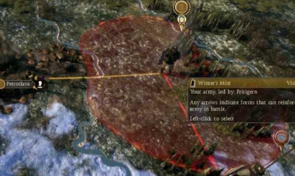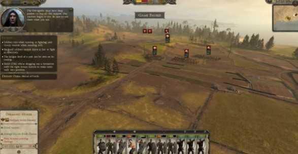 2、首先将会进入战场,东哥德人带领的军队来骚扰西哥特人的据点,你的顾问会要求你查看战场上两个有金色箭头指示的战略点。