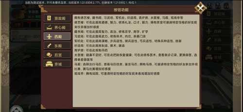 在豪杰成长计划游戏中这若大的宫殿里,肯定不会是那么的单调啦,接下来到侧点,侧殿就有的是西殿和东殿了。功能多,玩法多,有些简单易操作理解的,我就不给陛下您一一详解了。我们沟通直入重点