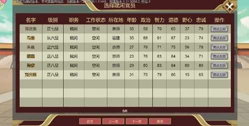 前期不必太着急,官员可换和不换。除了必须要的祭祀、或者诗文大会被占掉意外,建议多多攒下皇威,等到有名臣后再把皇威给名臣!用朱厚熜自带陆炳喔~(每年1月和7月记得去客栈找老包,说不定有名臣)