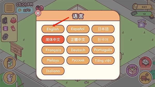 2、进入设置界面,选择语言栏中的【简体中文】选项,