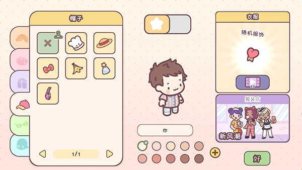 1、打开袋中爱游戏,进入角色diy界面,选择自己喜欢的发型、皮肤、头发后选择【好】选项,