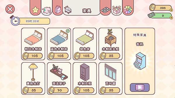 4、在游戏中有很多的材料可以选择,来装饰你自己的小屋,整个游戏充满了爱。