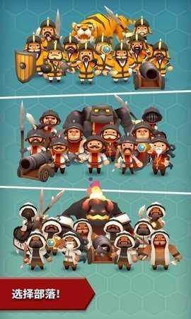 8、画面场景精美卡通,英雄部落种类丰富多样,玩家可自由选择自己喜欢的。