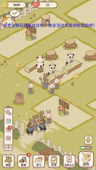 6,游戏中玩家需要提升医院是声望,这样才有更多的小动物选择你的一员,你也可以把医院装修的更好看。