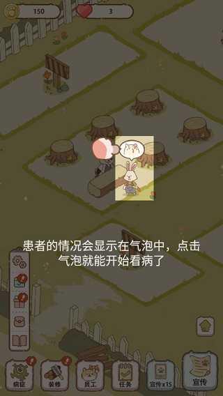 8,玩家需要疯狂的点击屏幕,要不然就不会有小动物来光顾你的诊所,你需要尽可能多的进行宣传。