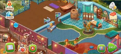 宅邸分成多个区域,待您一一解锁每个区域。修复各区都需要花3 到 6天的游戏时间,你需要完成该区所有的任务。每个花园任务都需要藉由进行三消游戏取得1 到 5颗星。某些任务需要花更多时间完成,如果您不想等待,仍有方法可加速任务完成过程。可利用屏幕左下方的游戏平板电脑追踪进度和当前的任务。