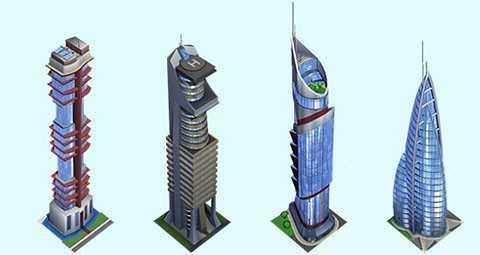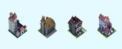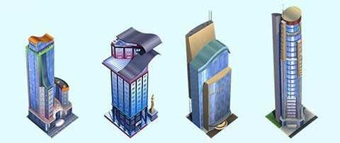 工业和商业建筑,前者提供制造原材料;后者利用前者的产品制造商品。这两类建筑的产物都可以用来完成居民区的房屋升级、货运和天灾任务,或用来进行城市贸易以换取模拟币。