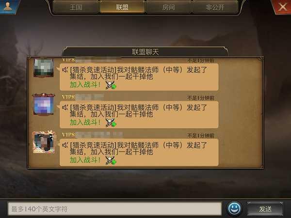 联盟猎杀活动是一项各个联盟在自己的王国打小怪,然后召唤打打怪的活动。
