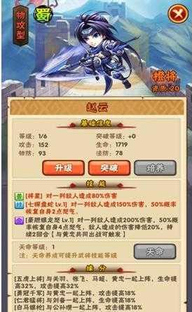 组合技能: 豪胆银龙怒Lv.1: 对一列敌人造成200%伤害,50%概率恢复自身4点怒气,敌人造成的伤害降低20%,持续2回合(与赵云共同出战可触发,由赵云发动)