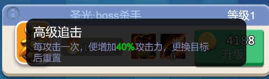 圣光,伤害无限叠加,如boss关过不去需适当升级。