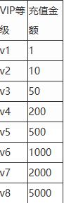 1、VIP等级对应的充值金额表。