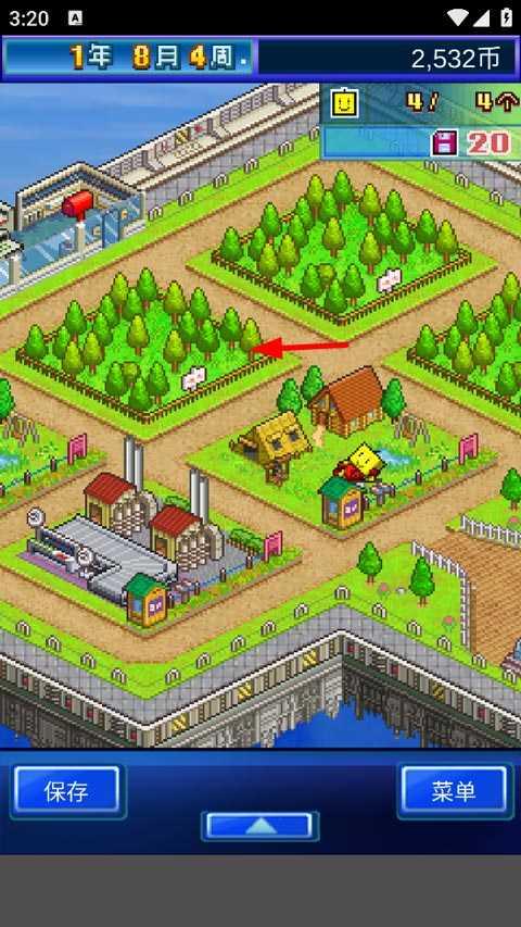 1、玩家打开星之开罗君游戏,进入游戏后找到种植了树木的地方;