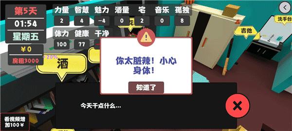 10、当你的干净分降低到负数的时候,系统会提醒你注意身体,记得及时洗漱保持身体健康才能继续赚大钱哦。