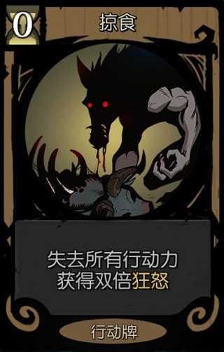 狂怒流的操作流程:基本上就是危机,月光起手,复制位给月光增加输出来源,用掉大部分行动卡,得到很多攻击卡,全部压抑掉,可以得到20左右行动力并且抽完牌库,用掉剩余行动卡,再用异变刷频率,20多点行动力足够刷死狼王了,不够的话,还有一张底牌叫恢复理智,可以补充狂怒上限的行动力,再刷一轮。