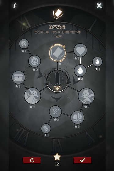 19、升级时优先升级武器槽,一般2-3足够,开战两斧子在手就很厉害了,其次行动力,过牌很依赖战斗号角和拍卖行这类卡,三章仙女祝福基本都选伤害+1。