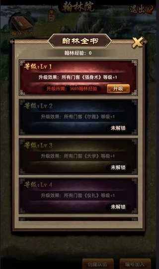 (1)翰林院学习可以获得翰林经验,翰林经验可以用于升级书籍技能等级,拥有相同书籍技能(如强身术、尔雅)的门客都会得到提升。因此也是必争之地,官品的高低则尤为重要。