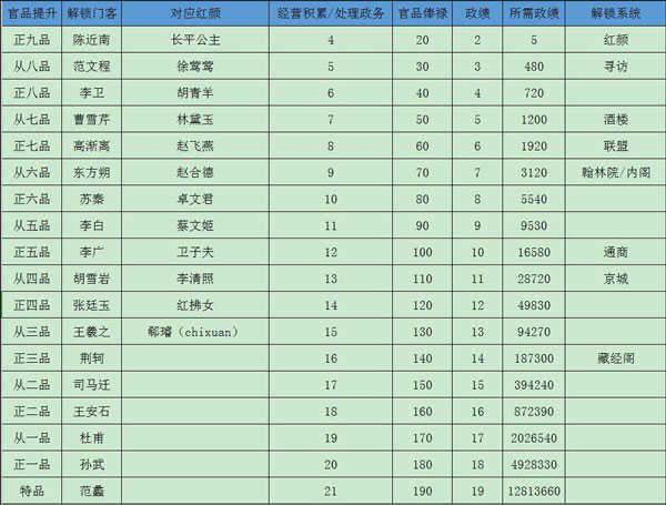 3、最后附带上官品提升攻略图: