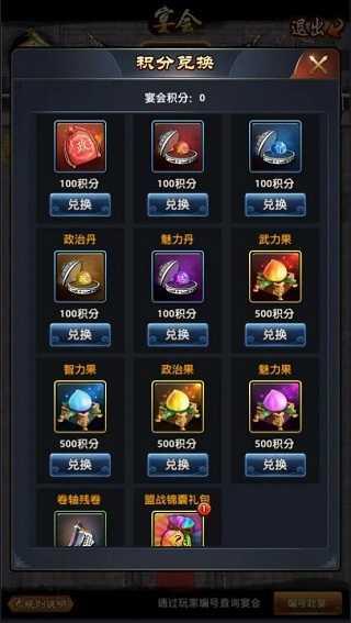 参加宴会需要交付元宝礼金,交多少元宝,可以获得和元宝相等的积分(积分用来兑换资源)每日限赴宴三次