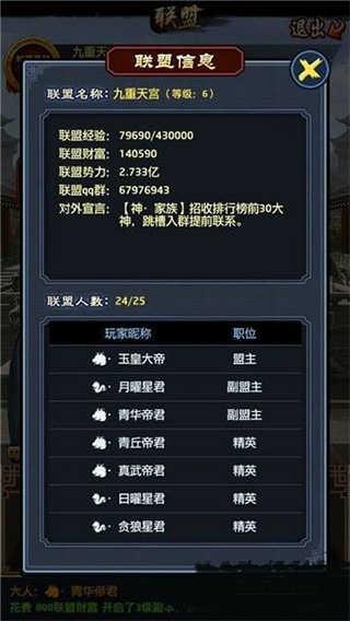 6.关于联盟,联盟是官老爷后面才增加的,在一定基础上加强了官老爷们的互动,每天为联盟建设一下,有经验拿还能有奖励,打打小BOSS,还能有意外的惊喜,何乐而不为呢。