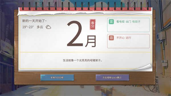 1、开局第一天选择做家务,能提升老伴的好感度、(不是必做,体验会有所不同)老伴的好感度会影响每个月月初的零花钱。