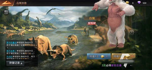 这里说的高级狩猎的狩猎地址就是龙鳞岛了,龙陵岛的恐龙资源是非常多的,只有在这个岛上,小伙伴们才能够捕捉到ssr级别的恐龙,比如说白元和暴龙这两个恐龙,她们的攻击力属性都是非常之高的,是小伙伴们都想获得的恐龙之一,除此之外,这个岛上的sr级别的恐龙也是非常不错的,例如迅猛龙和巨龟都是小伙伴们在中期战斗过程中能够扛住队伍大旗的角色之一,感兴趣的小伙伴就快来龙鳞岛上试一试手气吧!