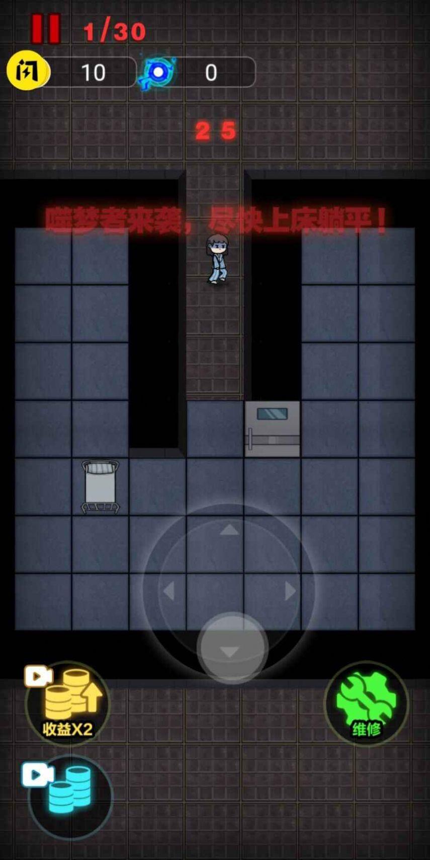 3、进入房间后直接上床,通过睡觉涨金币,建造装备,无论发生什么事千万不能下床。