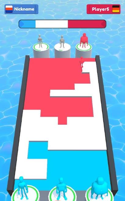 抢地盘PVP游戏是一款超好玩的抢地盘游戏,通过选择不同的小人进入场中,尽可能将白色的地板涂成你的颜色,然后去覆盖对方的地板,让你能在场景中占领更多的区域,每一个角色的颜料都是有限的,尽可能不要行进重复的路线来浪费颜料。