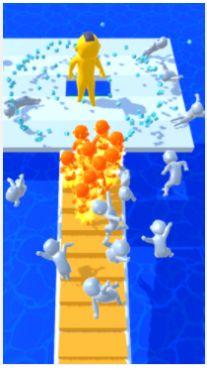 玩家需要控制一个小人向前奔跑,一路集结伙伴加入队伍。