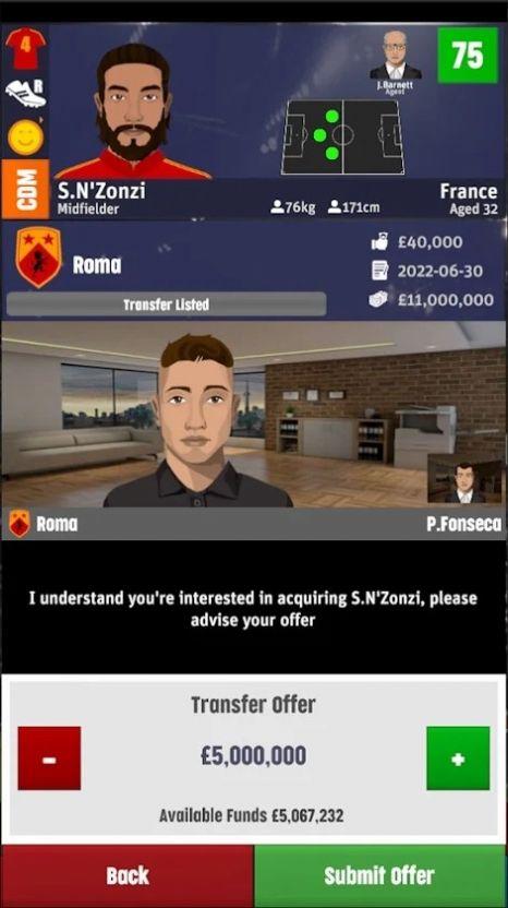 3、控制一支真实的足球俱乐部或创建自己的俱乐部,在足球俱乐部经理2022年是一款快节奏的足球俱乐部管理游戏