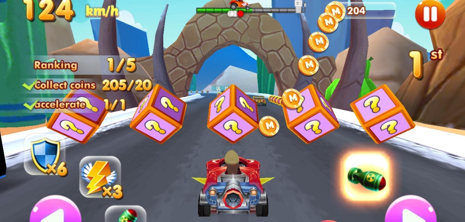 地铁急速卡丁车比赛游戏是一款简单玩法的卡丁车竞速游戏,采用了卡通的画风,玩家可以进行非常有趣的竞速挑战。搜集更多的道具,不仅可以让你的获得更大的动力,还能够不时的干扰你的对手,让游戏过程变得更加刺激。