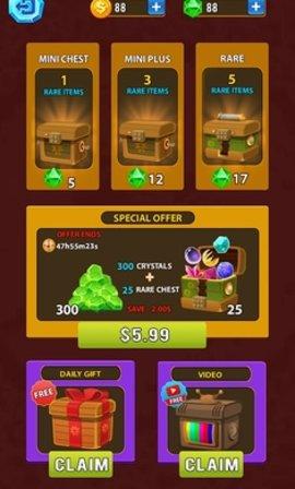 2、不同的关卡中有着不同的宝石矿石,玩家们需要经历各种不同的挑战,来获取大量的资源。