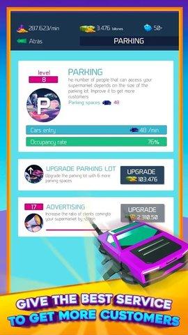1、放置模拟经营的玩法,你只需要进行简单的点击就可以让你的超市迅速发展壮大;