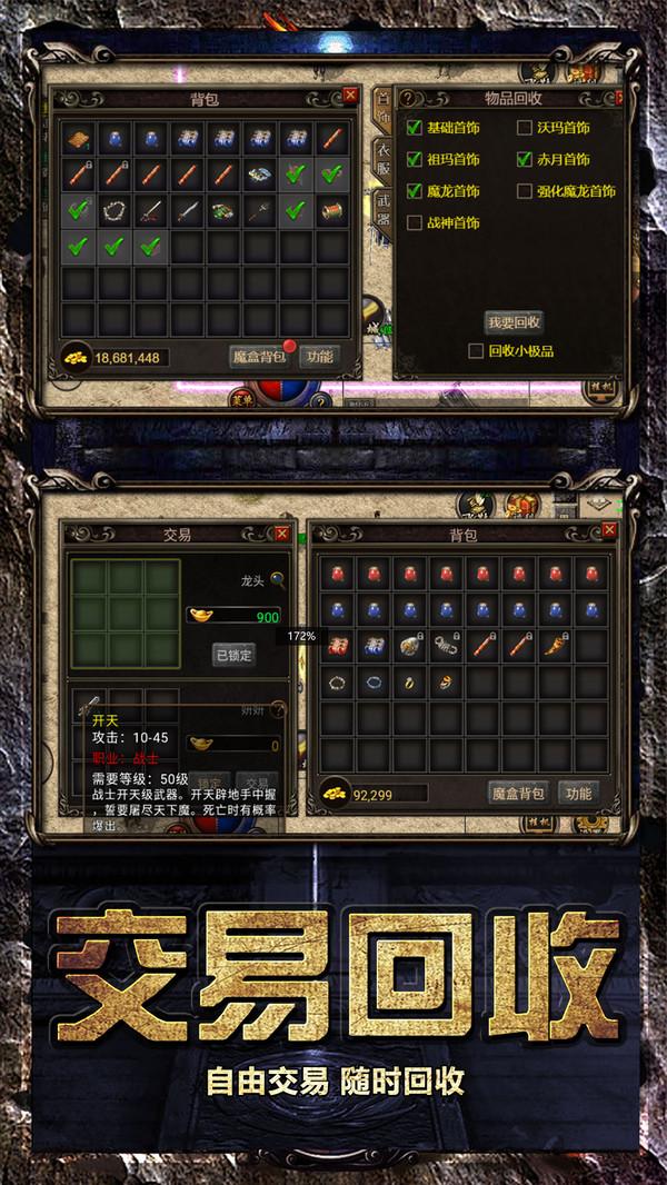 装备全靠打,爆了极品土豪回收。