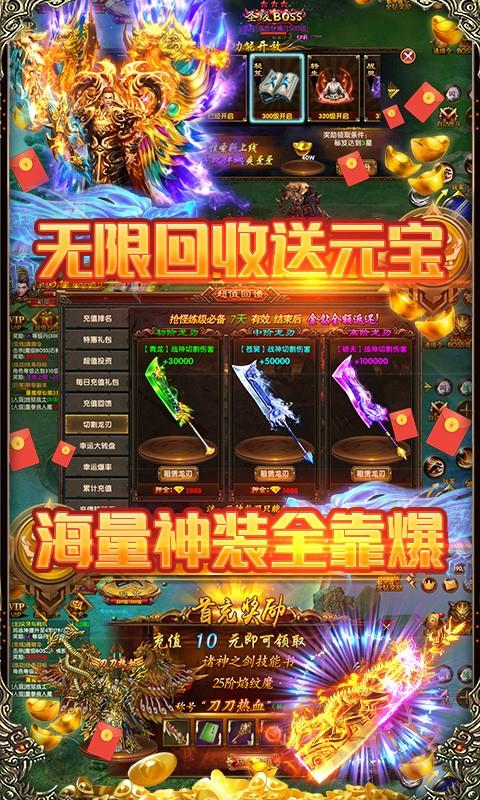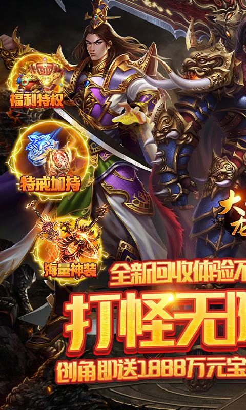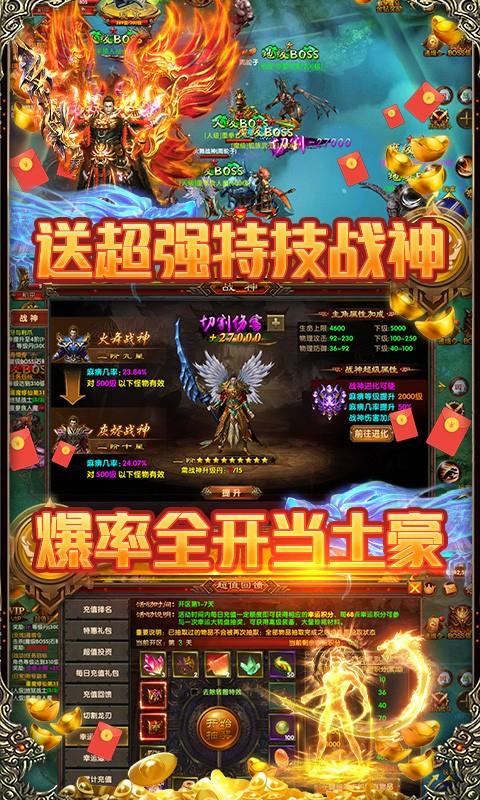 1.上线赠送vip8、神将三选一、38888钻石、十万金币
