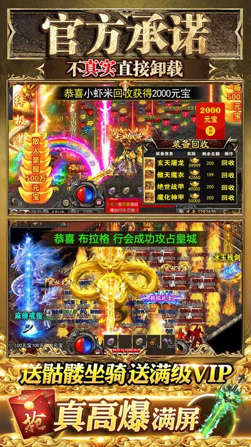 1. 高爆传奇呈现超清晰图像质量,其引人入胜的游戏内容以优惠价格提供给玩家。初入游戏者可领取免费起步礼包,加速其游戏进程。