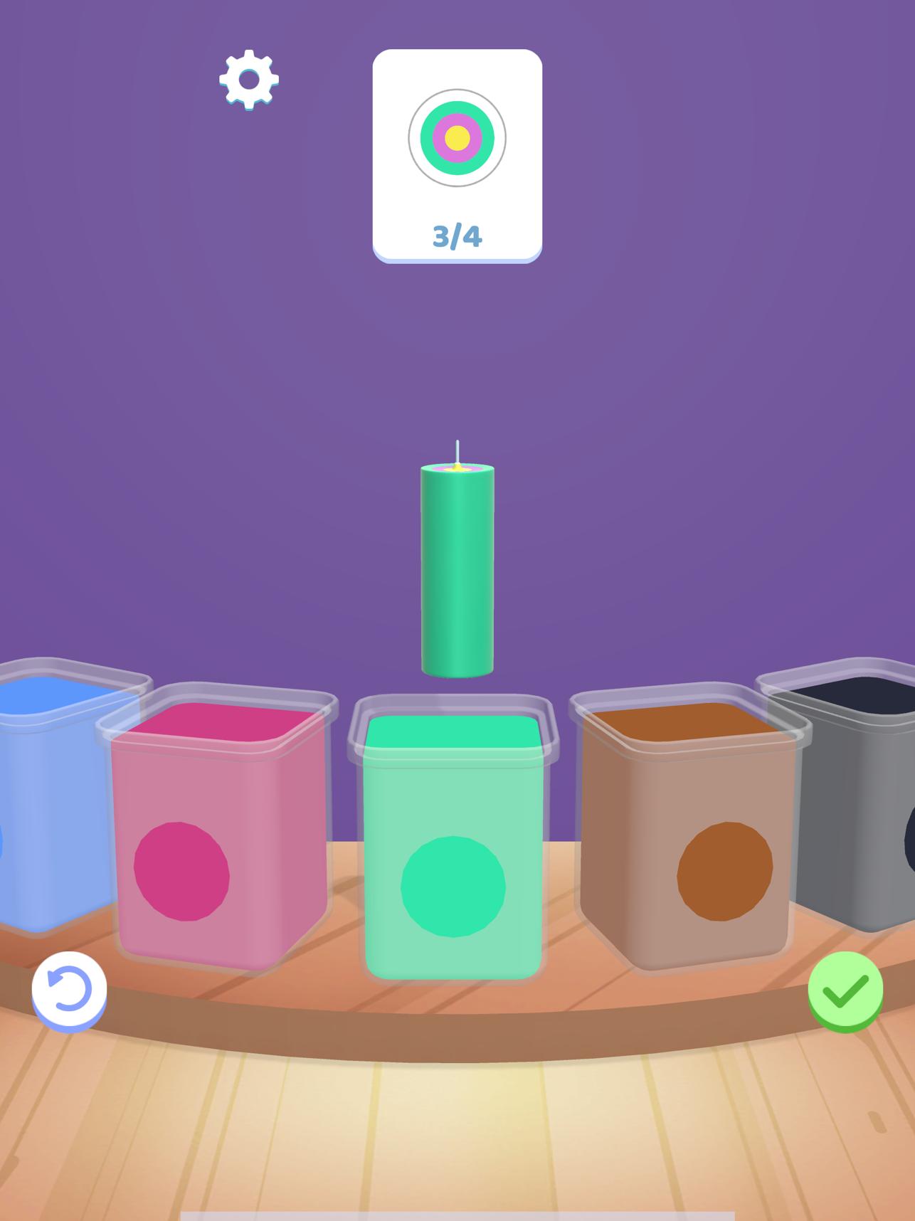 3. 游戏包含多个关卡,玩家可根据挑战结果获得相应的经济奖励,其收入的多少取决于所雕刻出的蜡烛形状与预定目标的相似度。