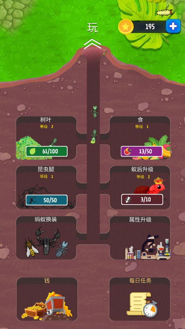 1、本游戏采用了多种设计风格来创造具有可爱特征的蚂蚁角色,同时引入了独特的进化机制与系统,其功能性丰富而引人入胜。
