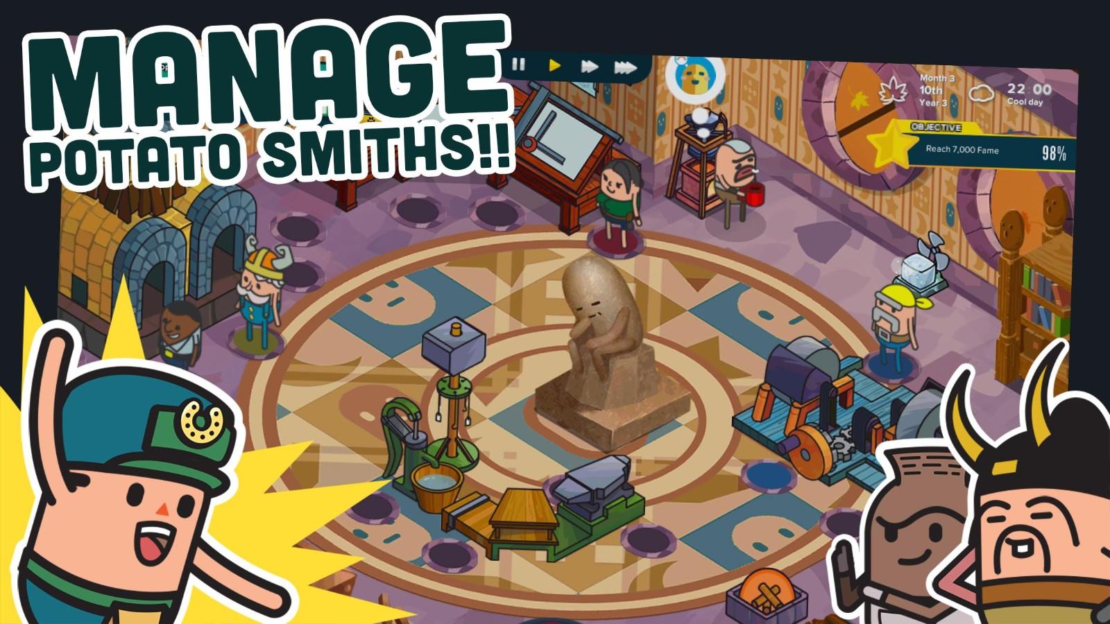 你要管理自己的武器店,在不可思议的土豆世界里扩大业务,将武器卖给来自各地的土豆英雄们。这是一款古怪的模拟经营游戏,你会遇到超过70个土豆英雄,你可以打造超过200种武器,管理30个滑稽的土豆铁匠,探索10个传奇英雄的故事,还可以收养可爱的土豆狗。