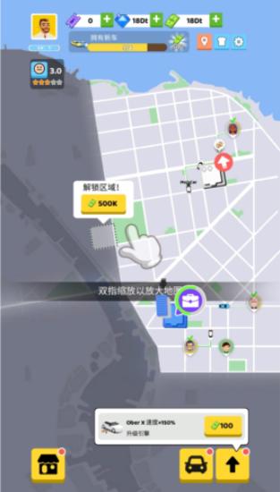 玩家可以使用赚取的资金在城市中扩展接载业务。解锁新的区域可以接到更多的订单,同时还需要平衡城市的运营状态,确保交通畅通,从而最大化盈利。