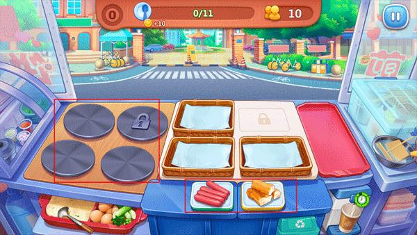 5、如果你不小心把煎饼烧焦了,也不用担心,只要快速点击两次,就能把食物扔掉了。