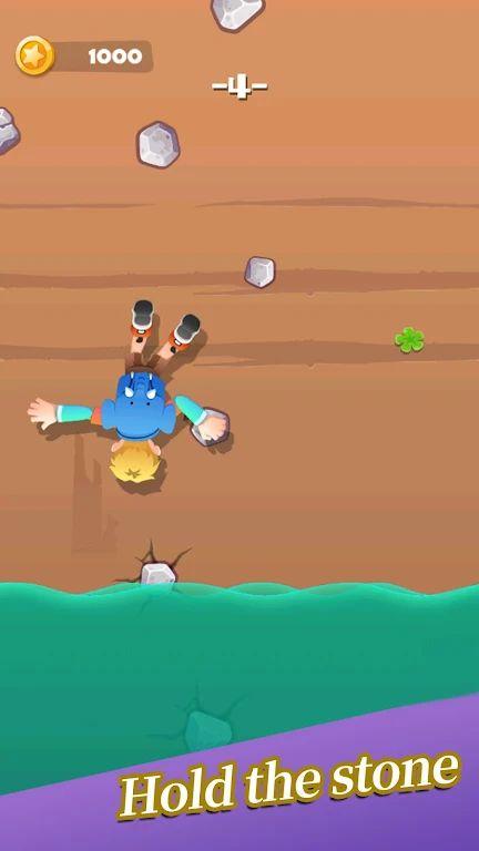3.若不慎失手,玩家可在坠落瞬间快速点击屏幕尝试抓住岩石,挽回局面。但若掉入水中,挑战即刻结束。