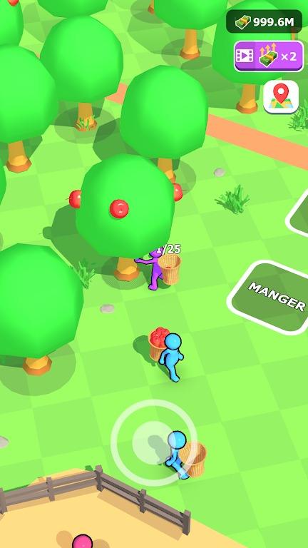 3.赚取金币后,可以雇佣更多员工来协助采摘和运输,同时升级榨汁机以提高生产速度。