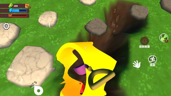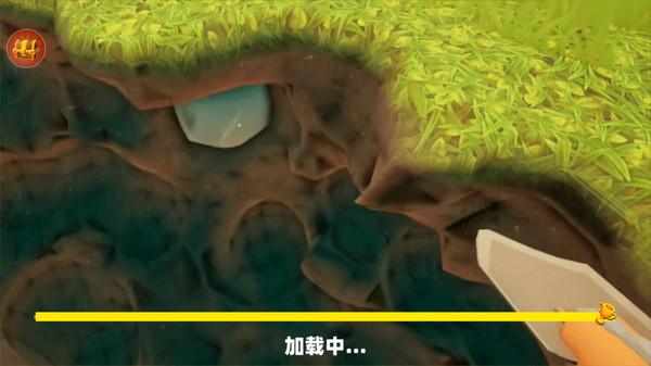 1、玩家操控角色在充满生机的户外场景中,手持工具进行挖掘作业,很简单样子。