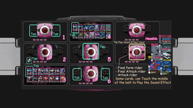 3、接着我们来进行变身,首先点击腰带两侧的按钮,这样腰带就会打开,左侧也会出现变身卡片。